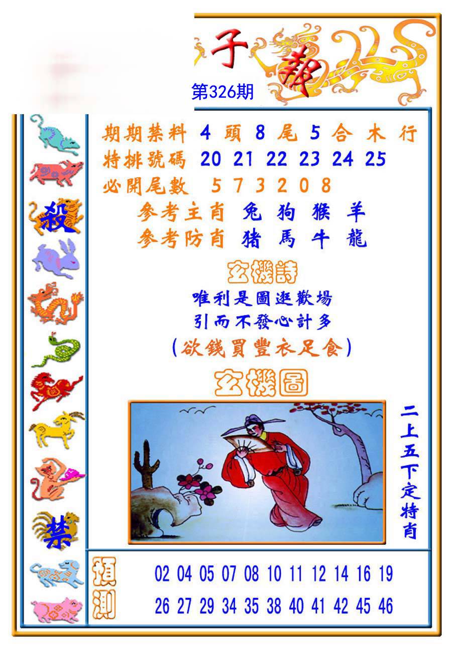 | 326期:绝杀【龙肖】绝杀【9尾】开:?00准 |