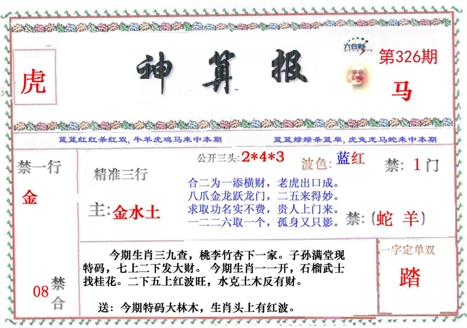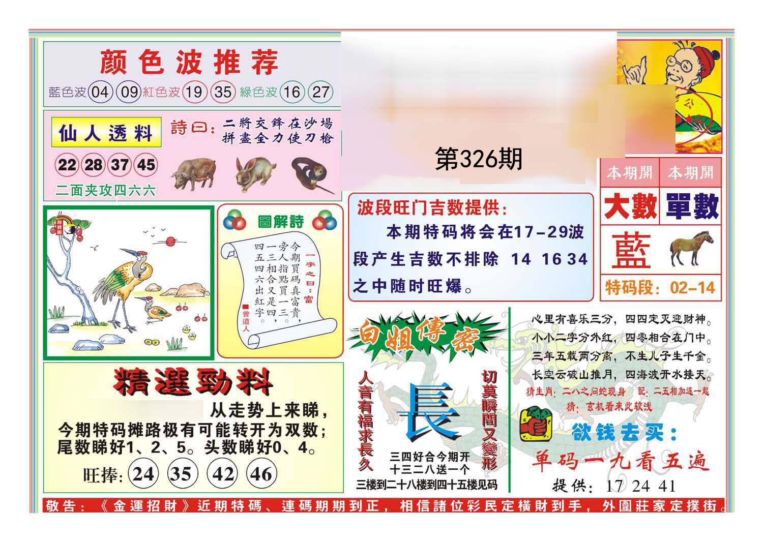 | 326期:绝杀【蓝波】绝杀【1头】开:?00准 |