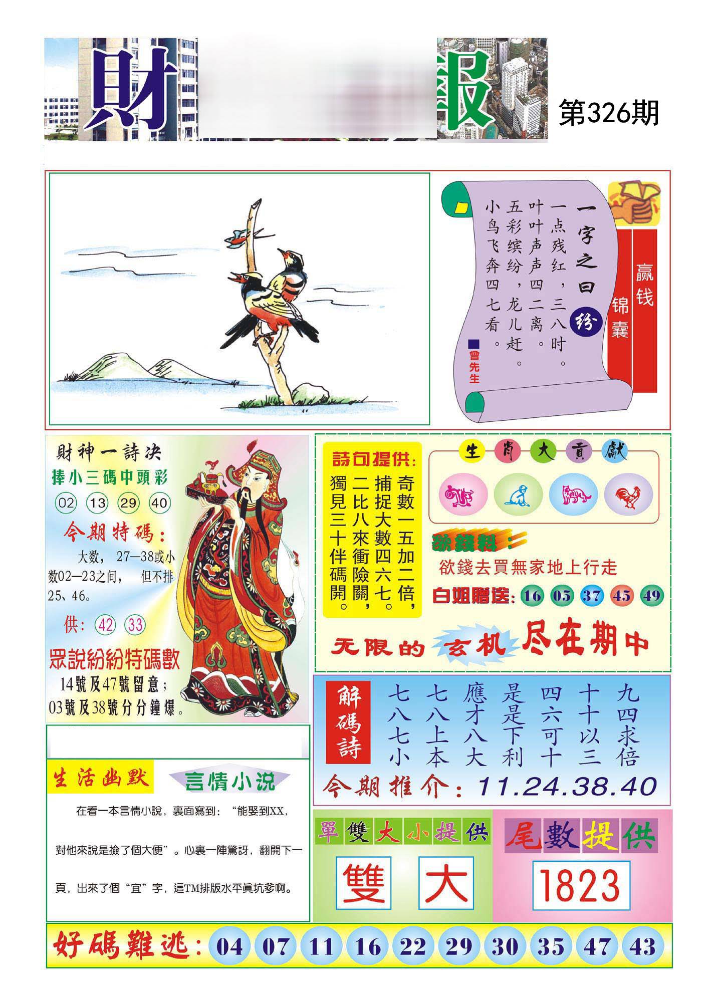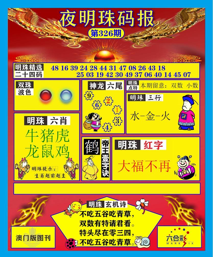 | 326期:【双数+马虎狗鼠】开:?00准 |