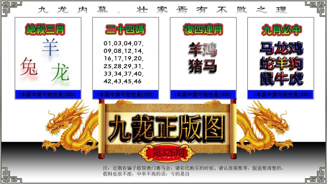 | 326期:平特①肖【龙龙龙】 |